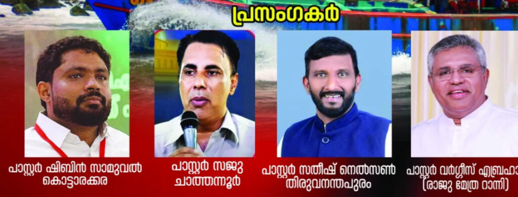 പാസ്റ്റർ മത്തായി ഹാബേൽ, പാസ്റ്റർ വി.എസ്. സെബാസ്റ്റ്യൻ, വാവച്ചൻ മാർട്ടിൻ, ജോയ് തോമസ്, കെ.ഡി. സോളമൻ, വാവച്ചൻ ബെനഡിക്ട്, പാസ്റ്റർ സജി പോൾ, പാസ്റ്റർ തങ്കച്ചൻ, പാസ്റ്റർ ഗ്ലാഡി പീറ്റർ എന്നിവർ നേതൃത്വം നൽകും.