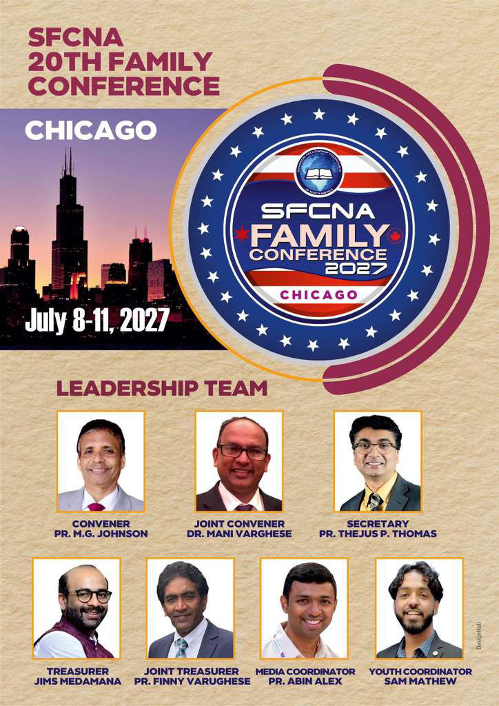 ചിക്കാഗോ: 2027 ജൂലൈ 8 മുതൽ 11 വരെ ചിക്കാഗോയിൽ വച്ച് നടക്കുന്ന ശാരോൻ ഫെലോഷിപ്പ് ചർച്ചസ് ഓഫ് നോർത്ത് അമേരിക്കയുടെ ഫാമിലി കോൺഫറൻസിന്റെ ലോക്കൽ ഭാരവാഹികളായി കൺവീനർ: പാസ്റ്റർ ജിജു പി ഉമ്മൻ, സെക്രട്ടറി: ഷെറി കെ. ജോർജ്, ട്രഷറർ: ജെയിംസ് ഉമ്മൻ, ലേഡീസ് കോർഡിനേറ്റർ: മിനി ജോൺസൻ, യൂത്ത് കോർഡിനേറ്റർ: Dr. സച്ചിൻ ഡേവിസ് എന്നിവരെ തിരഞ്ഞെടുത്തു. വിവിധ കമ്മറ്റികൾക്ക് നേതൃത്വം നൽകുവാൻ 27 അംഗ ലോക്കൽ കോൺഫറൻസ് ടീമിനെയും തിരഞ്ഞെടുത്തു.